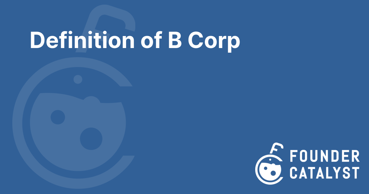 · A B Corp is a company verified and certified by B Lab to reach high accountability, transparency, environmental and social performance standards. Get B Corp compatible with FounderCatalyst.