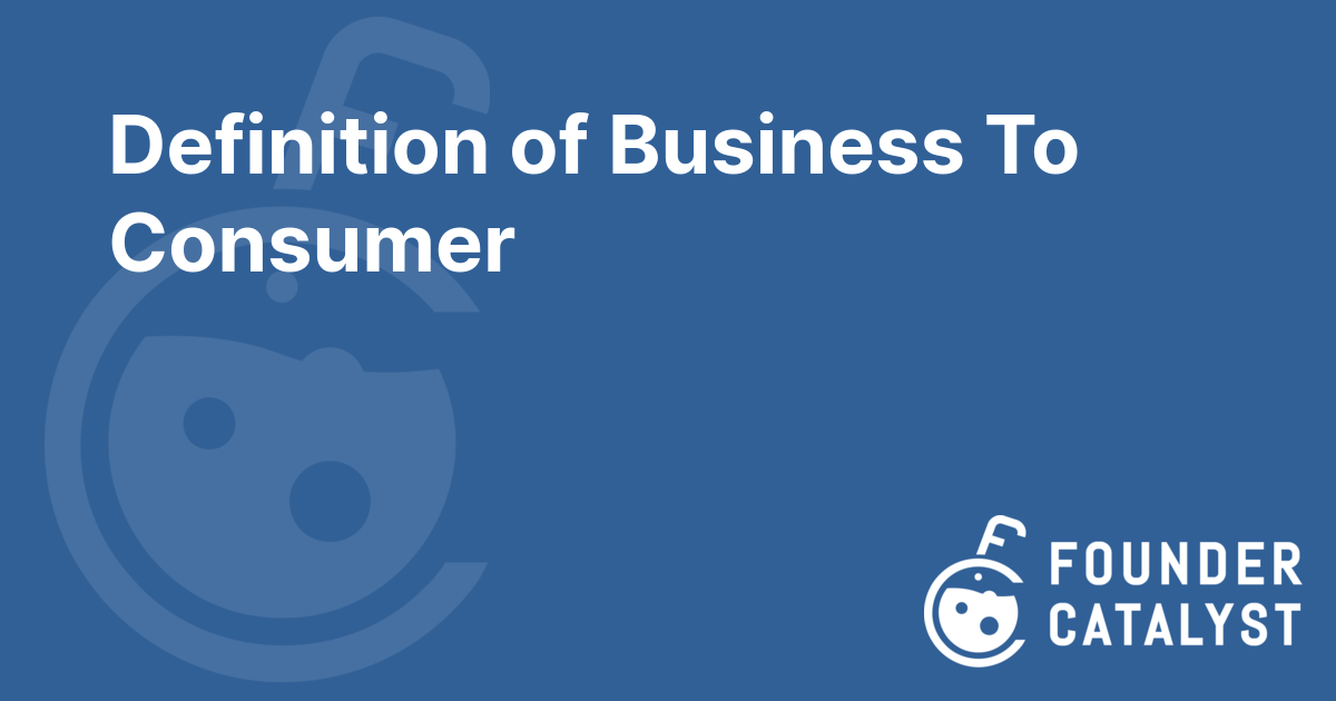 · B2C, otherwise known as business-to-consumer, is when a business sells directly to end consumers without using a business go-between. Also known as: B2C See also: Business To Business and Business To Business To Consumer