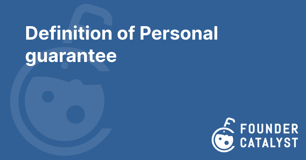 · A Personal Guarantee is a legal promise between (usually) a lender and the borrower stating that an individual behind the borrower is jointly responsible for paying back the loan. Also known as: PG