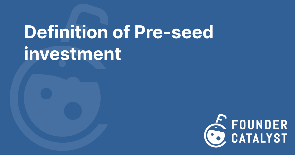 · Pre-seed investment is an investment that's given to a company before it has a product fit for market and any profit.