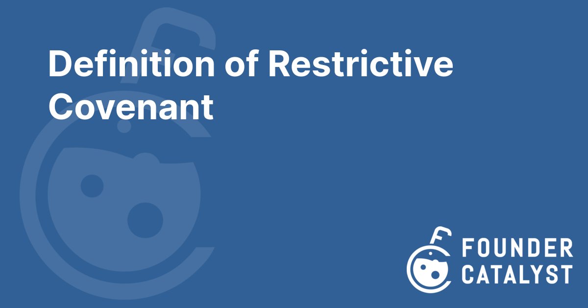 · A restrictive covenant is a contract that restricts the way a person can act. For example, it could prevent a departing founder from working in a competitive business for a defined period of time.